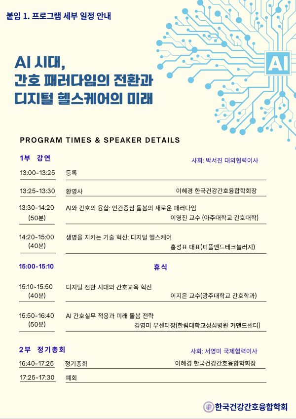 1) 주 제: AI 시대, 간호 패러다임의 전환과 디지털 헬스케어의 미래