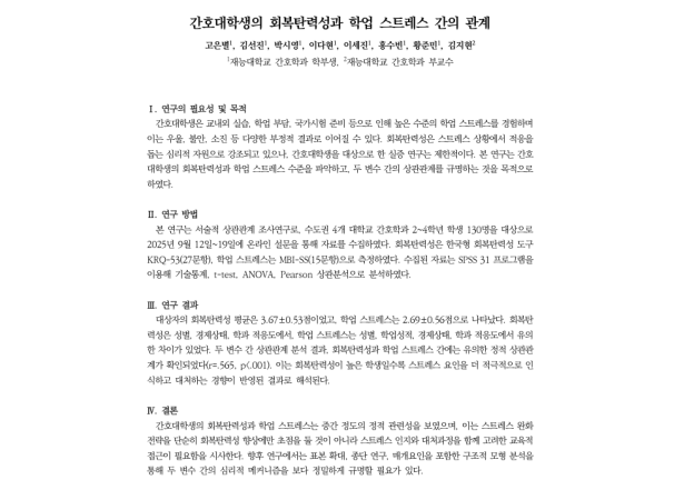 간호대학생의 회복탄력성과 학...